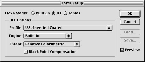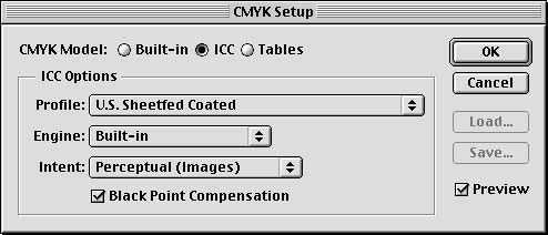 Figure 5 shows the settings for creating separations-load the profile for your output process, then set the Intent to Perceptual, and turn Black Point Compensation on.