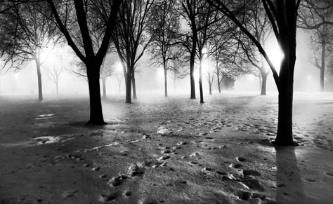 Figure 3: What really made this image work for me was the incredible light. The park lights were diffused by the fog, creating a soft glow that silhouetted the trees perfectly. ISO 1000, 1/25 sec., f/2.8, 27mm lens.