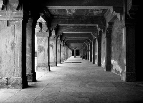 Figure 4: This image of the Agra Fort in India caught my eye because of the strong lines, the shapes of the pillars, and the repeating pattern. What made it really great is the perfect lighting that created the dramatic shadows. ISO 100, 1/100 sec., f/4, 28mm lens.