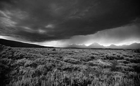 Figure 7: I was in the Tetons on my way to go backpacking when this storm rolled in. What drew me to this shot was the contrast between the dark clouds and the splinter of sunlight silhouetting the mountains. ISO 200, 1/80 sec., f/3.5, 16mm lens.
