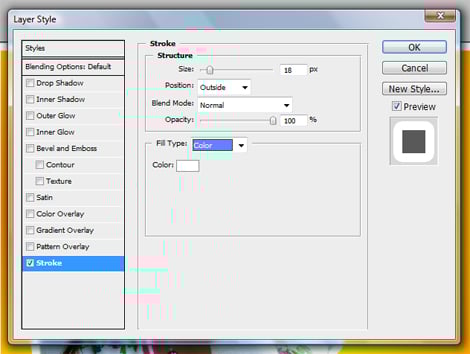 Now you need to add that white stroke to the original layer. In the Layers panel, click the layer the model is on and then go to Layer > Layer Style > Stroke. Set the color to white and experiment with the settings for various effects. Here are the settings I used: