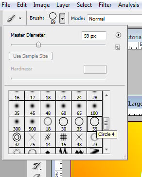 To make this look even more like the Fanta ad campaign, let’s add circles to the background. Click the Create New Layer on the Layers panel and click-and-drag the layer to the top of the layers. Then choose the Brush tool, and up in the Options panel, choose an appropriate brush. I chose a circle brush.