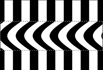 When working with shapes or patterns, the choice of wrapping or repeating might be very important. In this example, the middle portion of the image was selected and the Shear command applied. Wrapping the edge pixels from the left side back around to the right side of the image maintains the pattern.