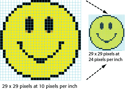 An image has no inherent resolution—it’s just a grid of pixels. Instead, you get to set the resolution by specifying how closely spaced the pixels are. Depending on the resolution you choose, your image will cover more or less area (Figure 1).