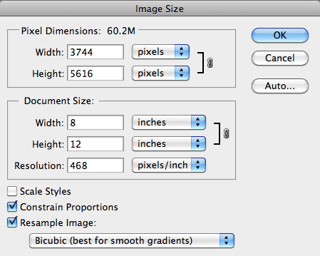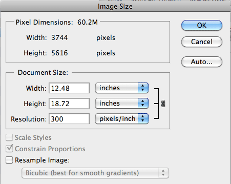Figure 2. At 300 ppi, 3744 x 5616 pixels result in a final print size of 12.48 x 18.72 inches.