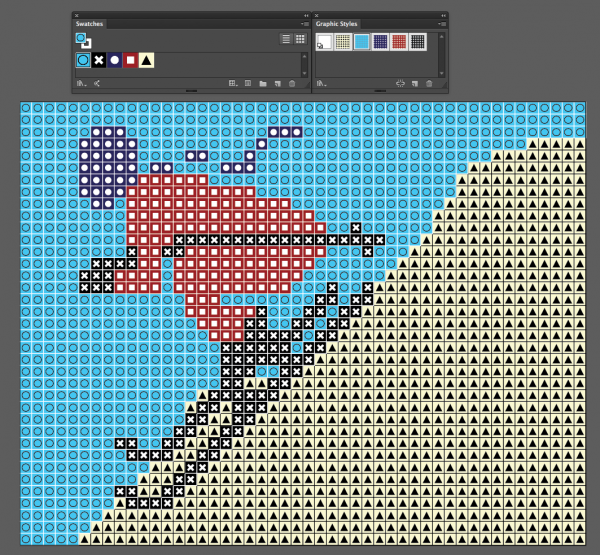 For long-term usability, set this as a graphic style, so it’s easier to apply and edit later on. Then Select> Same > Fill Color and apply the same graphic style to all the yellow squares.