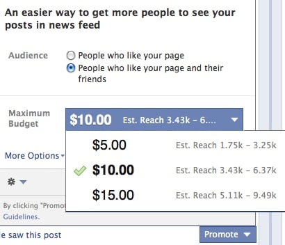 Figure 3: The Promoted Posts feature lets you pay a little extra to increase your audience for a specific posting.