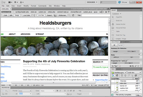 Figure 1. This WordPress page is being read from the server and displayed in Dreamweaver’s Live View. Click the image below for a larger version.