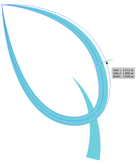 Figure 3: When using the Width tool to adjust the thickness of a stroke along a path, Smart Guides give you precise values.