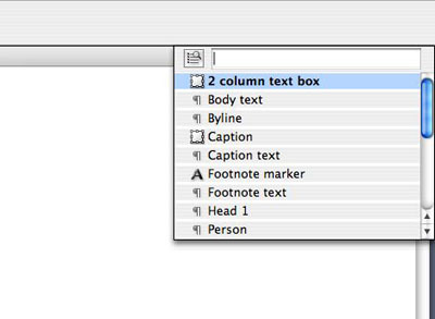 The new Quick Apply feature allows you to speedily apply styles to characters, paragraphs, or objects. Because it’s mostly keyboard-driven, it’s especially useful when you need to zoom through a complex document with dozens of styles. To use Quick Apply, select text or an object and hit Command-Return (Mac) or Control-Enter (Windows). This causes the Quick Apply palette to temporarily appear in the upper-right corner of the screen.