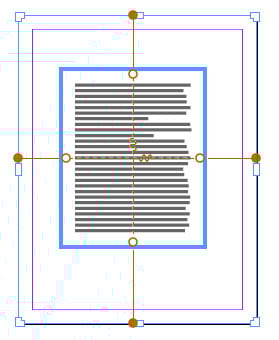 The final Liquid Page Rule, Object-based is at the top of the heap, both in terms of precision and complexity. It allows you to control the size and position of each object individually, by pinning the edges of objects to the edges of the page. When you select a page item with the Object-based rule applied, eight circles appear around the object, four on the inside, and four on the outside.