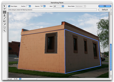 As if this weren’t enough, Adobe included Healing technology in the Vanishing Point tool, which automatically blends pasted imagery blend into its new background.