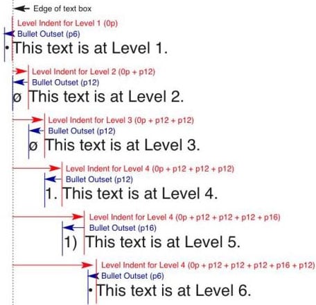 Quark’s Help file provides this example of how the various levels of outlines can appear.