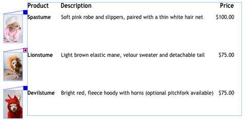 The photos on the left are attached to the beginning of the items in the text box. As the paragraphs of text move up or down, so do the photos.