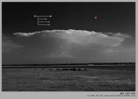 Figure 9. With two Control Points, I can darken the sky without having to create any masks to protect the clouds or the ground. Click the image to see a larger version.