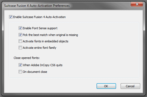 In earlier versions of Suitcase, there were times when InDesign would freeze or crash with the auto-activation plug-ins installed and active. I found this usually happened when complicated layouts were being exporting to PDF or InCopy. This was so common that the first troubleshooting question I would ask when someone reported a crash was if they had any font management auto-activation plug-ins installed. While I’ll never say “never,” at this point I’ve seen no such issues with InDesign CS5.5 or CS6 in the several months that I’ve been using Suitcase Fusion 4.
