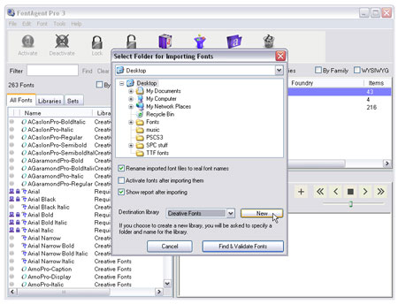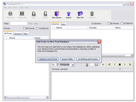 Figure 1. Part of the process of adding new fonts to the FontAgent Pro for Windows database. Click on the image for a larger version.