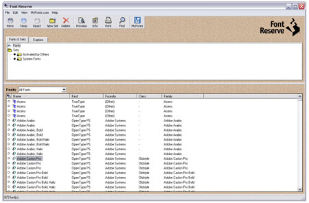 When you launch Font Reserve for the first time, you can perform a system-wide search for available fonts it can manage, including those installed by third-party products, such as the Adobe Creative Suite (CProgram FilesCommon FilesAdobeFonts). This is one of the best features of Font Reserve, as it lets you make the Adobe fonts, which are predominantly cross-platform OpenType, easily available to other non-Adobe design applications. When the search is complete, Font Reserve manages each font’s activation status from its current location on your system, rather than moving them into a managed library.