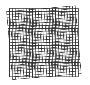 In this example, two regular grids intersecting at a 5-degree angle create an irregular moiré pattern.
