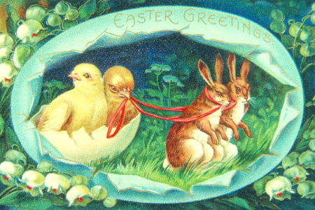 Figure 2: The images in Figures 1 and 2 are taken mostly from turn-of-the-century postcards. It just doesn’t seem right talking about Easter without a few images of colored eggs and bunnies. But now, on to the ham.