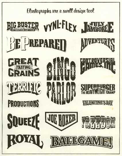 Figure 8. Solotype had a process it dubbed “elastographs” that made these types of distortions optically. Many larger type shops around the country offered these services, and the results could be seen in logotypes and advertising throughout the decade. Some of these effects became available for the first time during the mid ’70s. Previously such works would have to be drawn by hand, a skill many designers lacked.