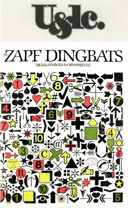 Figure 13. When the International Typeface Corporation introduced a new design, it didn’t just put it out in the market. It promoted it heavily and showed designers how to use it. In 1978 when Zapf Dingbats were released, this page from U&lc magazine showed designers that dingbats could be fun and perhaps take on starring roles.