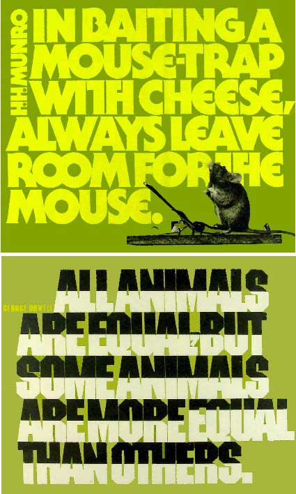 Figure 14. Bold and tight. These two 1978 examples were designed by Herb Lubalin and are from U&lc magazine. Top is Serif Gothic and bottom, Machine Bold. Very tight (often overlapping) letter space, tight word space, and tight leading were the hallmarks of the Manhattan ad-shop style.