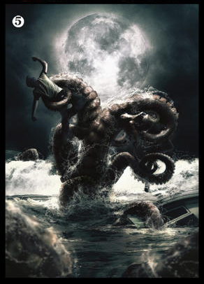 1. First you decide to do that giant tentacle thing that you’ve seen people do. (It’s funny–you come across giant tentacle themes every so often. Guess it originates somewhere from the tales of the Kraken in Scandinavian folklore mixed with Japanese manga/anime culture). You go through Shutterstock’s library searching for the right pictures. Here’s the list: