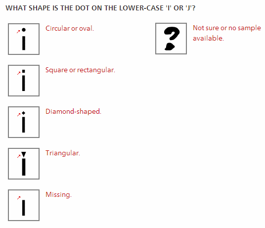 The first two are set up in a quiz format and ask almost identical questions. Ever since I discovered Linotype’s version I’ve preferred it because it looks a little nicer and it’s more user friendly, but you could use either.