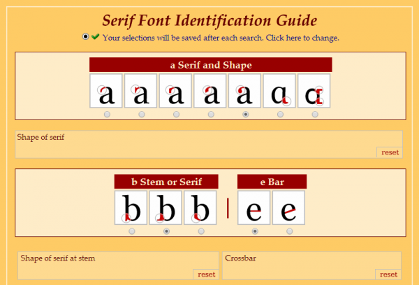 If you have a serif font, Bowfin’s tool is worth a try. Look through the characteristics of each letterform and select options that match your sample. If you’re not sure about something, skip it to ensure that you don’t accidentally kick the right font out of your results.