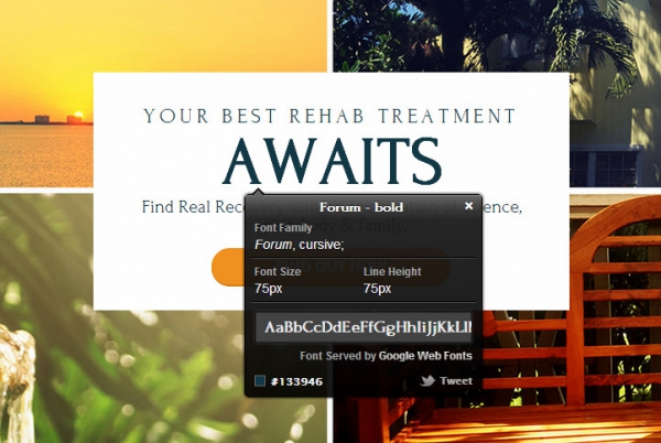 Here’s what WhatFont looks like in use, on the homepage of 12 Keys Rehab: