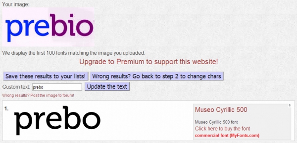 On the next screen, you’ll be presented with fonts that it thinks are a potential match—and lo and behold, it looks like the first result is the one!