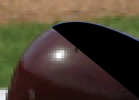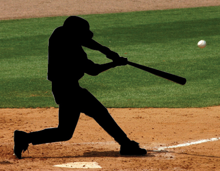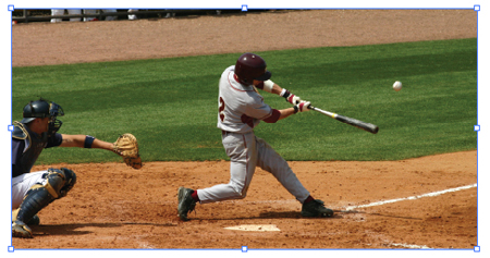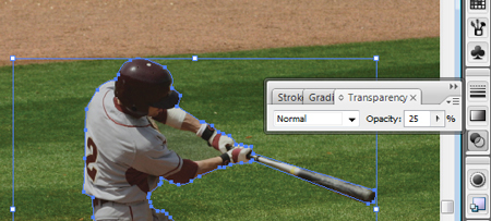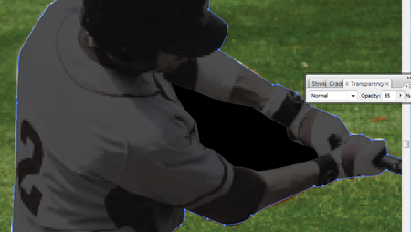 You need to differentiate this object you just traced from the area you need to cut out from the shape. Making the traced object transparent lets you see through to the photo and identify where to cut — in this case, the area between the batter’s arms.