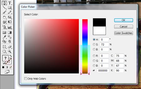 Choose the Pen tool and change the Fill color to Black by either going to the Swatches palette, or by double-clicking on the Fill color and clicking on the black area in the Color Picker.