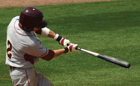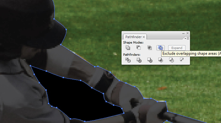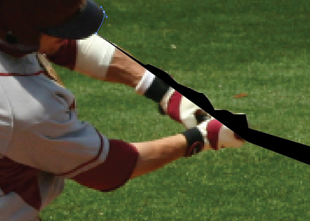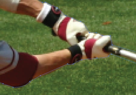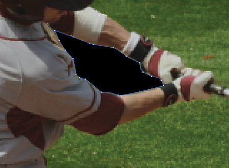 Select the Pen tool and trace another area, in between the batter’s arms, or if you’re using a different photo, trace any area that needs to be removed.