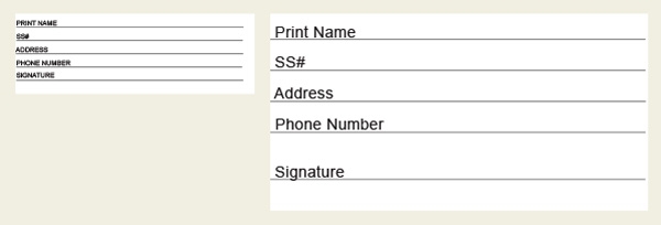 Forms with fields requiring signatures or other information to should be wide, and include generous line spacing in order to accommodate a larger handwriting. In addition, make sure the instructions and field labels are clear enough to be easily read.