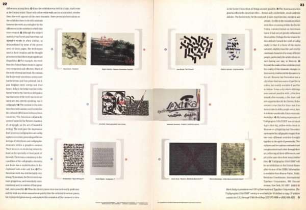 The shape and form of square brackets are used to configure the text as well as contain the images in this spread designed by Pentagram. U&lc, Vol. 18, No. 3, 1993.