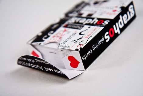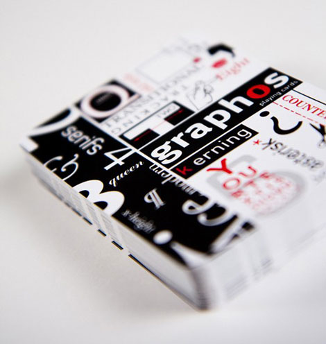 Each card from the deck of Graphos Playing Cards will tell the unique story of a specific area of focus in typography. All spades highlight on the importance of “anatomy”; hearts on “classificiation”; clubs on “glyphs”; diamonds on “type setting”. Fonts are focused on sans serif, serif, script and decorative.