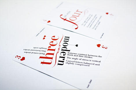 These decks of cards were created by Michelle Lam, a graphic designer from Vancouver, to inspire and educate both designers and lay people about typography. If you’re not already a type addict, a deck of these cards could very well make you one.