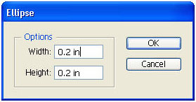 You can click-and-drag out a small circle by holding Shift to keep the correct proportion, or you can click on the Artboard with the Ellipse tool selected and enter a specific size, such as .2 inches shown in Figure 2. Make the Fill black and Stroke none.