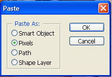 Double-click on the Background layer and name it. In the Layers palette, click-and-drag the new layer, which has the pasted shape from Illustrator below the original layer. There should now be two layers, one that has the image and one that has the shape pasted from Illustrator. The pasted shape layer should be below the image layer.