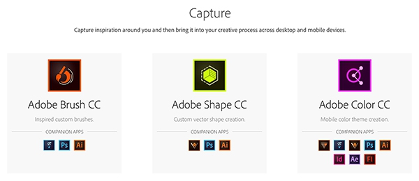 I am often overwhelmed with all of the apps that Adobe has, especially their mobile apps. Trying to keep track of which one does what and which desktop apps each works with has often required Sherlockian deduction. Luckily, they seem to have streamlined the organization of the apps, and even present them in such a way that it’s clear what the purpose of the app is, and how it fits into the bigger Adobe picture. While so many of the announcements at MAX made me ooh and ahh like a kid at a fireworks display, I was most excited about the mobile apps that let me capture and create on my iPhone and bring those creations into my desktop workflow.