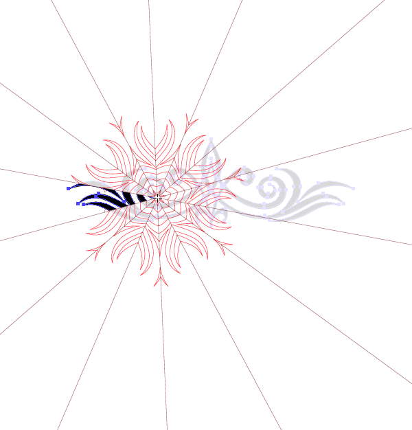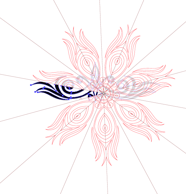 Von edited the mirrored pattern (shown in blue) to remove clutter and refine it with additional elements