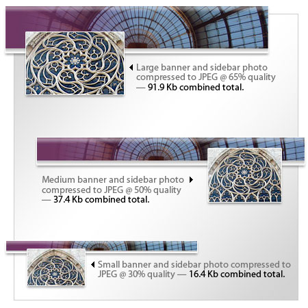 Figure 2: Making different size images for each device can make loading faster on each device. Notice that the compression assigned to each images is barely discernible as the image size decreases.