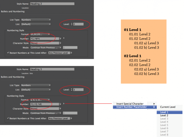 Figure 9: The numbering options for the Heading 2 and Heading 3 styles shown above.