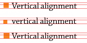 Figure 3: In the top example, the bullet is out of vertical alignment with the text that follows. In the second example, the scale and position of the bullets has been adjusted to the x-height—applicable since the text is lowercase. In the bottom example, the position of the bullet is adjusted to the cap height of the text.