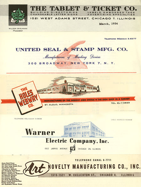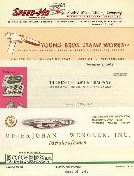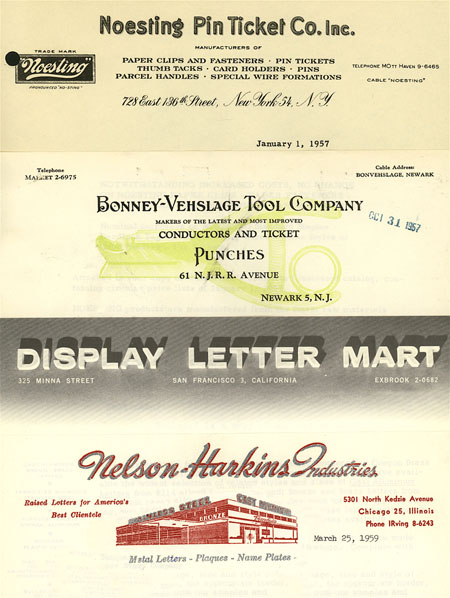 All of the letterheads shown here are scanned from the actual stationery, and if you click on them you can see a larger version.
