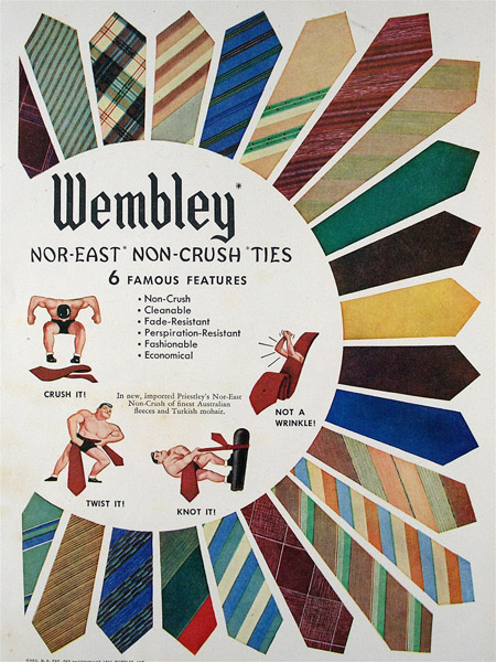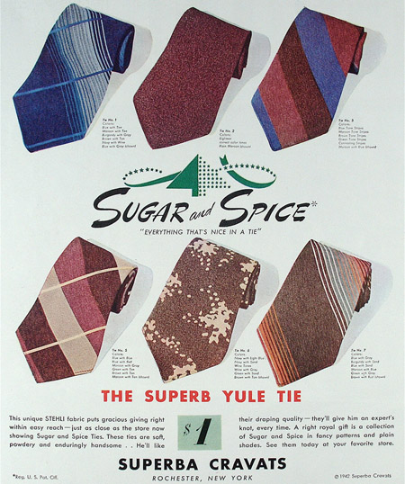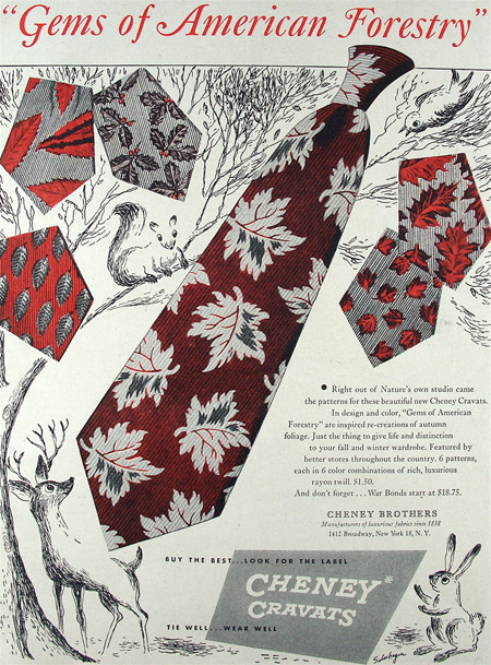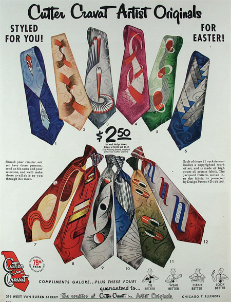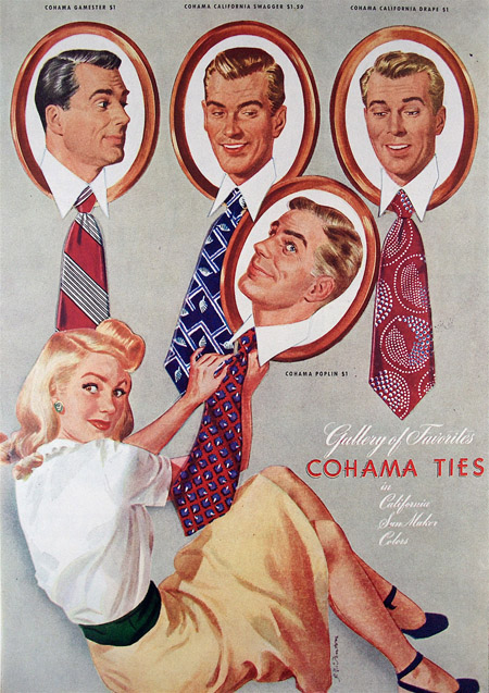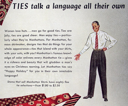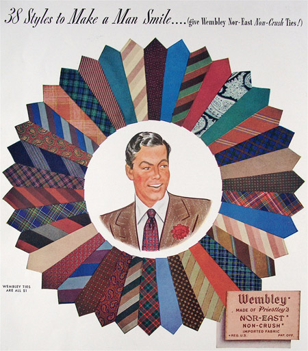 These ads for men’s ties date from 1942 to 1961 and appeared mostly in issues of Esquire magazine. If you click on them you can see larger versions.