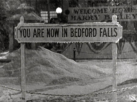 The set of Bedford Falls (and Pottersville) was built on RKO’s ranch in Encino and is thought by the residents of Seneca Falls, New York, to be based on their town (which Capra did visit in 1945). Each year Seneca Falls holds an “It’s a Wonderful Life” Festival. It’s also home to the Hotel Clarence, named after the guardian angel in the movie.
