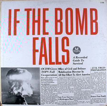 But the real threat and fear came in 1961 during the Cuban Missile Crisis (where it was discovered the Soviet Union was placing nuclear missiles in Cuba, close enough to strike the United States). President John F. Kennedy went on television and advised Americans that they should, among other things, consider building their own fallout shelters to protect themselves from nuclear radiation after a blast. This 1961 record album outlined some of the steps people were advised to take in preparation for the inevitable.